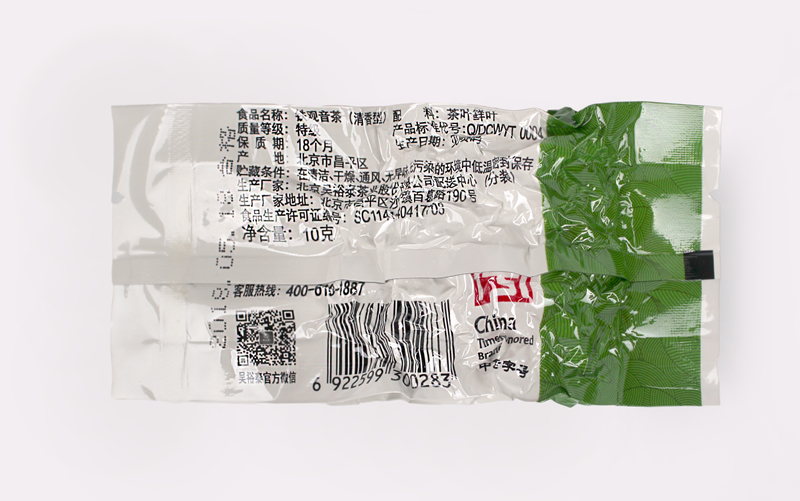 特级清香铁观音800干茶色泽翠绿润;香高、持久;汤色金黄明亮;滋味鲜醇高爽,音韵明显。10克/包,方便卫生。