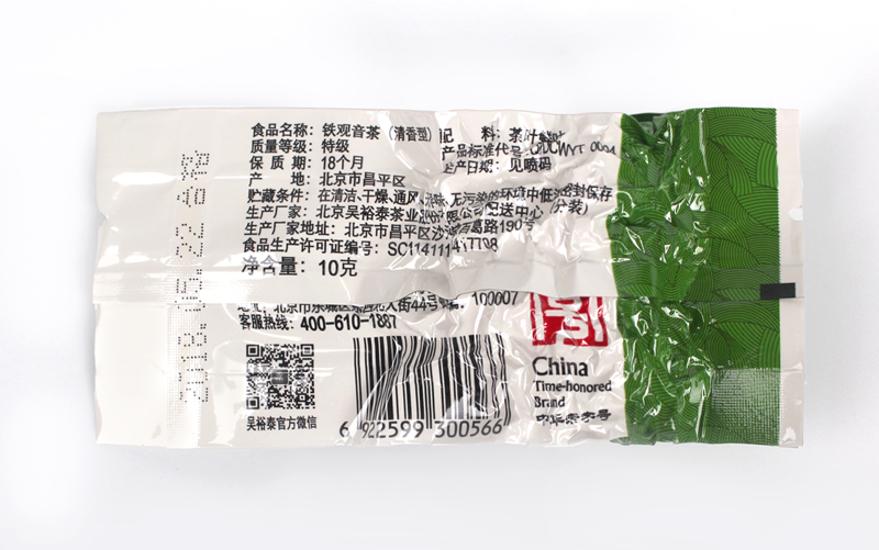 特级清香铁观音1000干茶翠绿润、香气高,持久,音韵明显,滋味鲜醇高爽、甘滑,韵味十足,叶底带有余香,可经多次冲泡。10克/包,方便卫生。