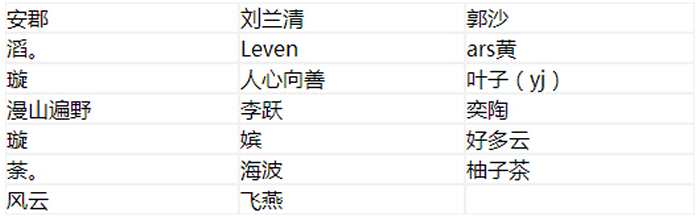 活动上线第一周即受到广大爱茶人的热烈追捧,以下公布第一期中奖茶友的名单(微信昵称):
