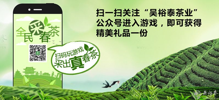 吴裕泰在2015年为大家奉上了一款手机游戏――“全民采春茶”。作为今年春茶节的主打活动,在采春茶游戏推广期间,广大茶友可通过参与游戏、晒游戏成果、邀请朋友一起玩等等方式参与互动,并有机会获得最新鲜的春茶试饮包和大礼包。作为首家推出手游的国内茶叶企业,吴裕泰再一次走在了行业前列。